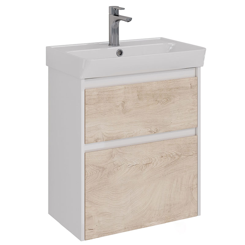 Тумба Под Раковину Подвесная/Напольная Lemark Combi 60 2 Ящика, Дуб Кантри/Белый Глянец
